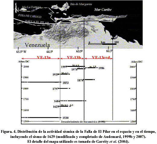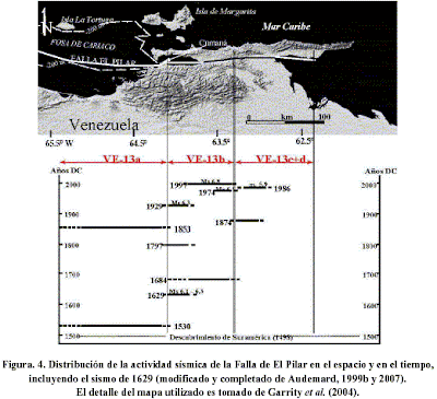 Ciertamente, en la página 65 de esa obra se ofrecen cinco extractos documentales que informan de la presencia de este terremoto, despertando con ello la atención sobre la fecha y su posible relación con la actividad tectónica de la región. Para el presente trabajo se han hallado otros documentos, así como también ha sido posible corroborar algunos de los originales citados en el referido catálogo, en reciente visita al Archivo General de Indias (AGI). Del mismo modo, ha sido posible reconstruir el contexto material de la ciudad de Cumaná hacia el propio 1629, lo cual ha permitido inferir sobre los efectos del sismo. Con estas informaciones se presentan nuevas conclusiones sobre la actividad del Sistema de Fallas de El Pilar, así como también se propone una versión ampliada y mejorada de la historia sísmica para el Oriente venezolano.